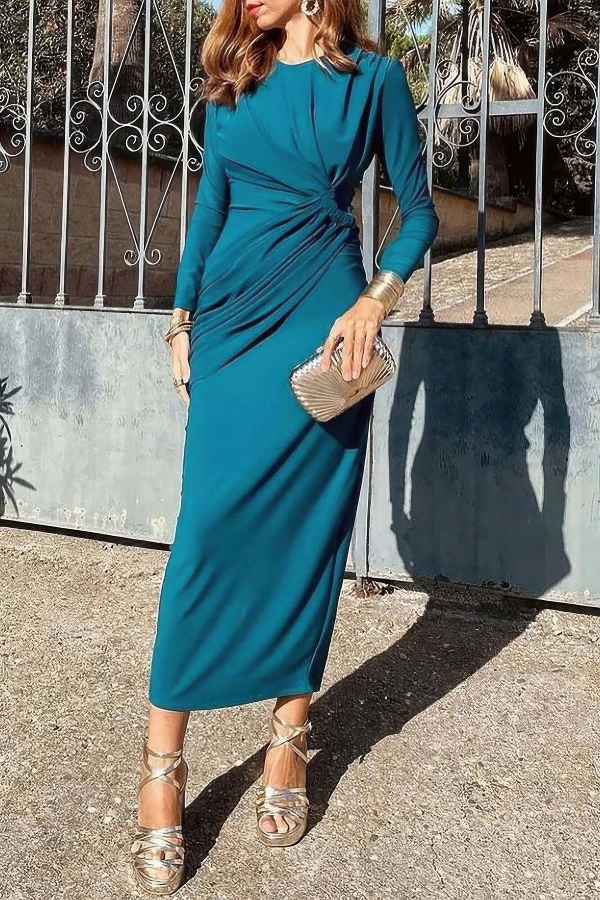 • Timeless Silhouette: The round neck and midi wrap hem give a balanced blend of modern and classic.