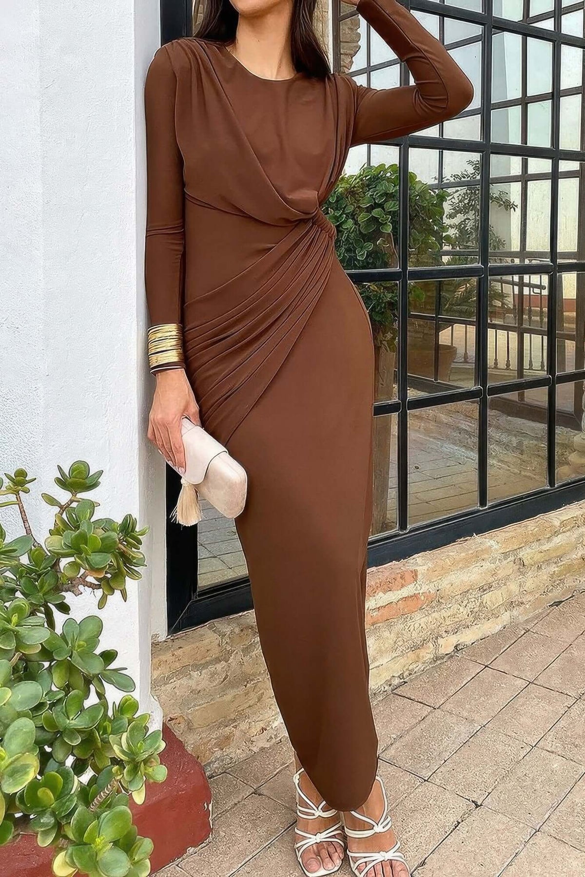Chic Ruched Wrap Hem Dress – Solid Color with Elegant Fit - Courtney’s Collections