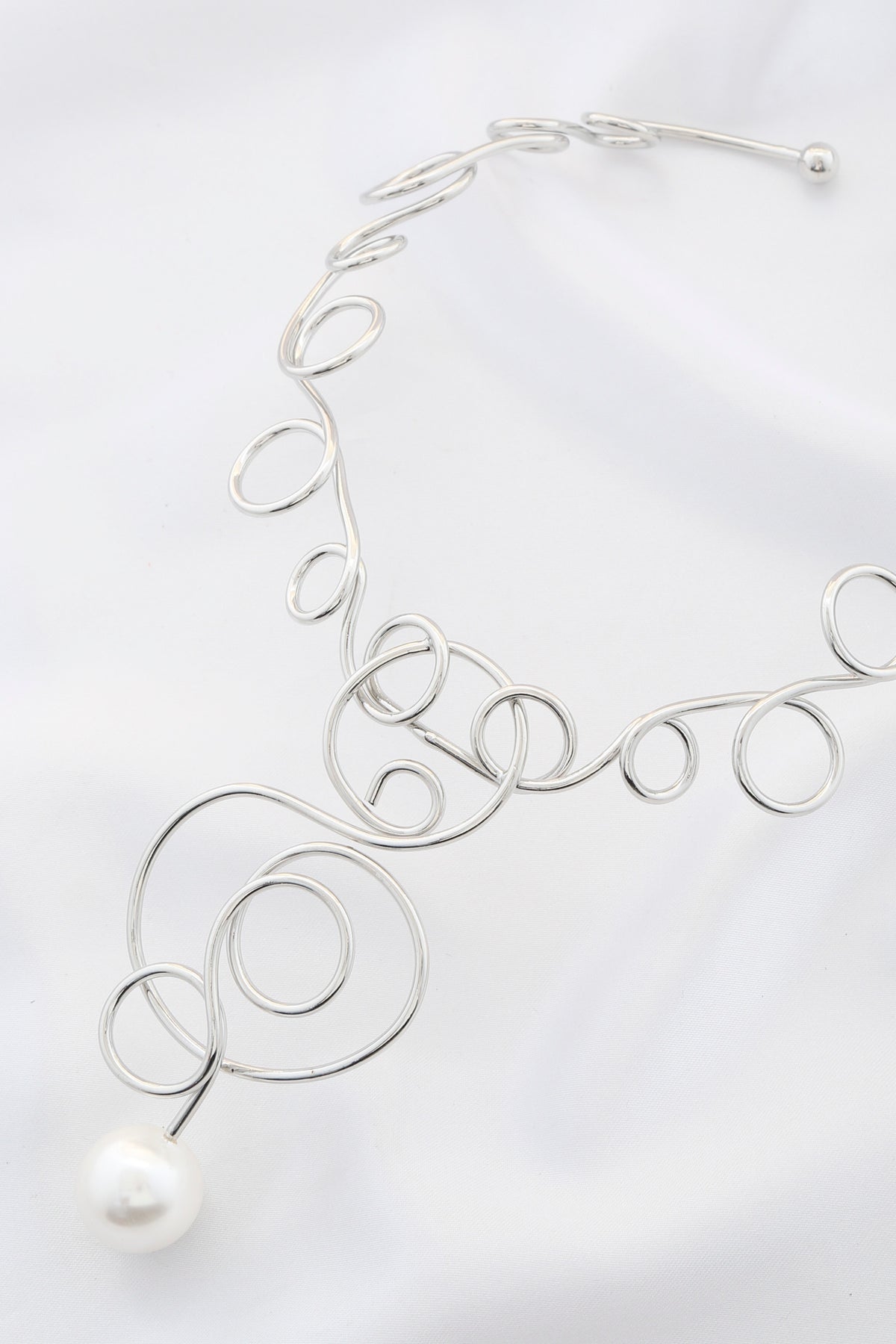 Collar de metal con remolino de perlas