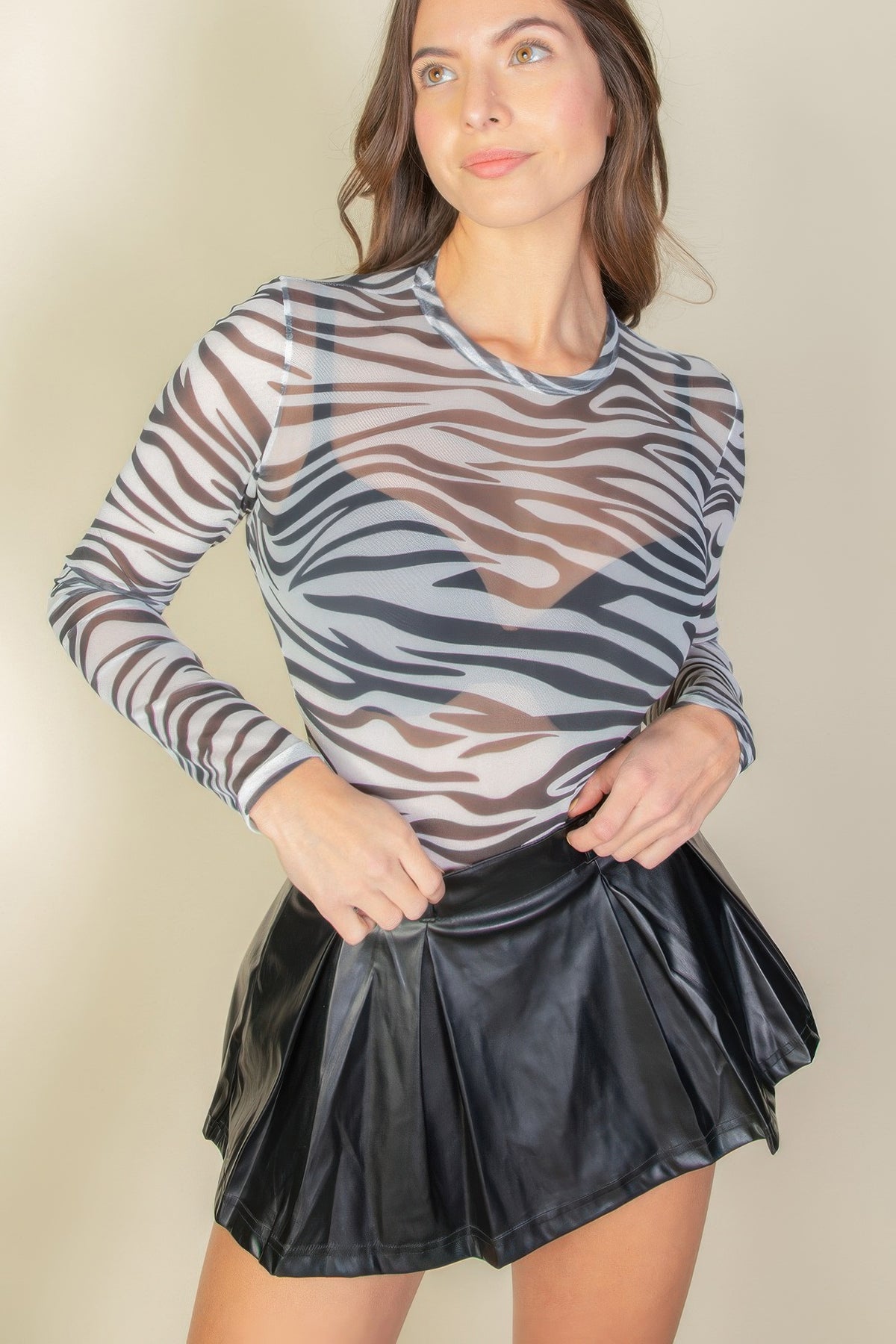 Este body combina un estilo atrevido con la máxima comodidad. Su exclusivo estampado de cebra y su diseño de malla transparente le dan un aspecto espectacular, mientras que su tejido suave y elástico te garantiza comodidad y seguridad durante toda la noche. Perfecto para destacar en tu próximo evento, esta prenda realzará cualquier look.