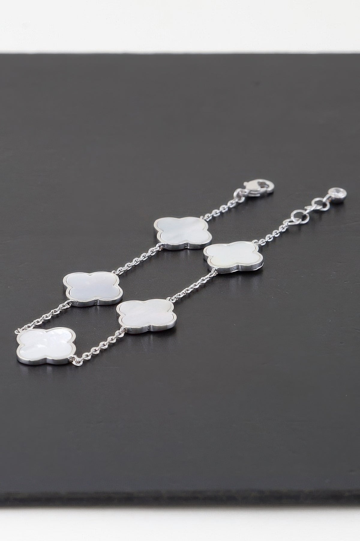 Agregue la pulsera con dije de trébol de múltiples piedras a su colección hoy y disfrute de un accesorio hermoso y atemporal que realzará su estilo con cada uso.