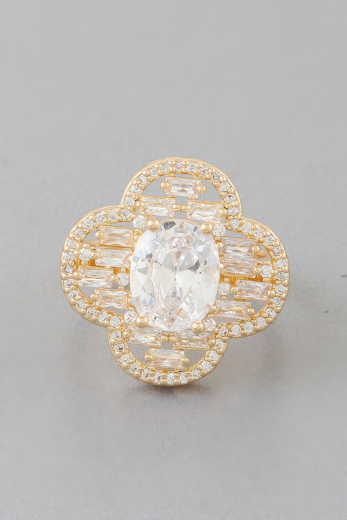 Agregue el anillo de trébol cúbico cristalizado a su colección hoy y haga una declaración audaz y elegante que celebre tanto el estilo como la sofisticación.