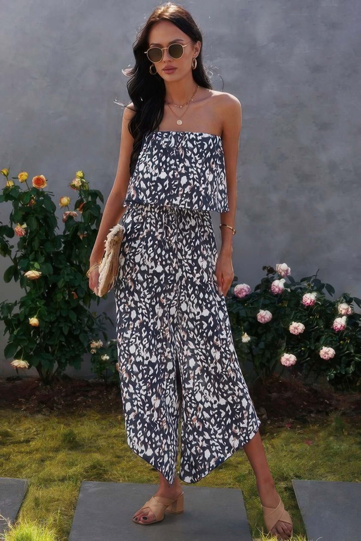 Atrevido y fresco, este mono tubo con estampado integral es una prenda destacada para un estilo informal en climas cálidos. Diseñado con escote palabra de honor y pierna ancha, ofrece un corte relajado pero elegante que se adapta a la perfección a tus movimientos. Confeccionado en 100 % poliéster, su tejido ligero te mantiene fresca y cómoda durante todo el día. Su vibrante estampado le da personalidad, haciéndolo perfecto para vacaciones, salidas de fin de semana o reuniones informales. Simplemente añade sandalias o cuñas para un look completo, sencillo y llamativo.